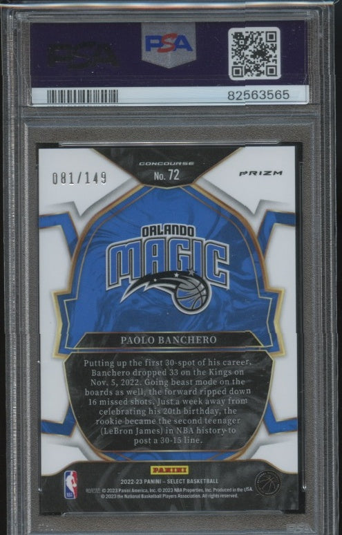 2022-23 Panini Select #72 Paolo Banchero White Prizms PSA 10 #/149 RC
