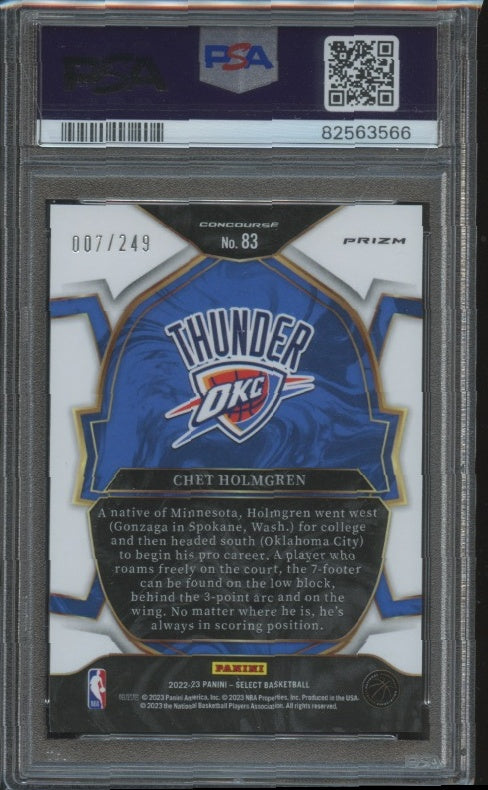 2022-23 Panini Select #83 Chet Holmgren Blue Scope Prizms PSA 10 #/249 RC