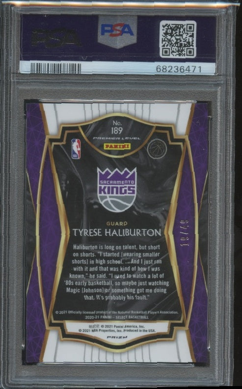 2020-21 Panini Select #189 Tyrese Haliburton Red Disco Prizms PSA 10 #/49 RC