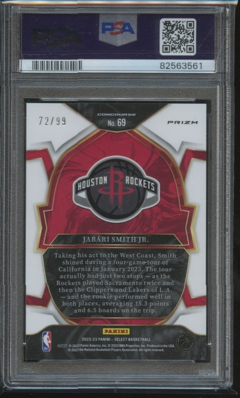 2022-23 Panini Select #69 Jabari Smith Jr. Light Blue Disco Prizms PSA 9 #/99 RC