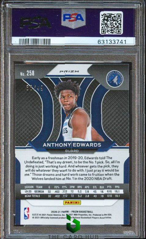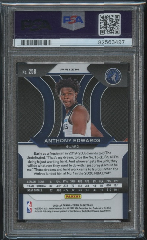 2020-21 Panini Prizm #258 Anthony Edwards Silver Prizms PSA 10 RC
