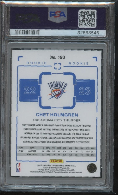 2022-23 Panini PhotoGenic #190 Chet Holmgren Gold PSA 8 #/10 RC