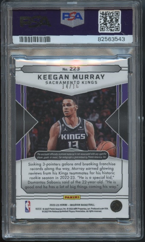 2022-23 Panini Obsidian Keegan Murray Rookie Jersey Ink Auto FOTL PSA 9 #/16 RC