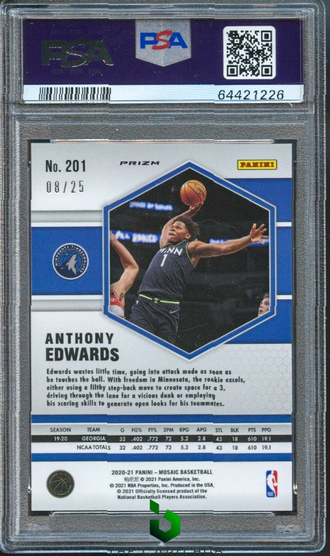 2020-21 Panini Mosaic #201 Anthony Edwards Mosaic Orange PSA 10 #/25 RC