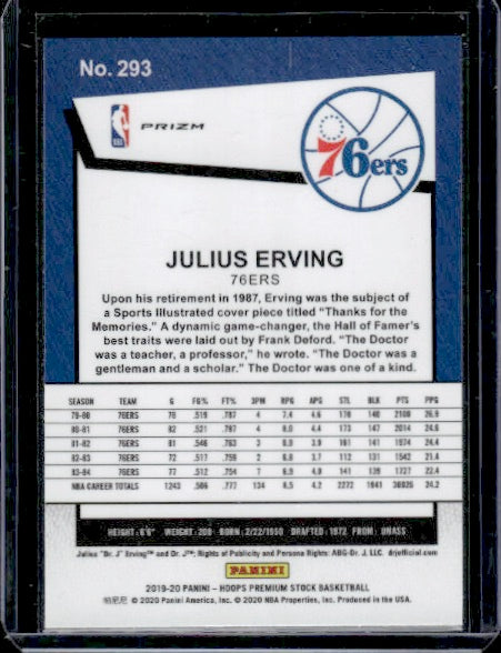 2019-20 Hoops Premium Stock #293 Julius Erving Prizms Pulsar