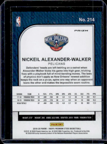 2019-20 Hoops Premium Stock #214 Nickeil Alexander-Walker Prizms Pulsar
