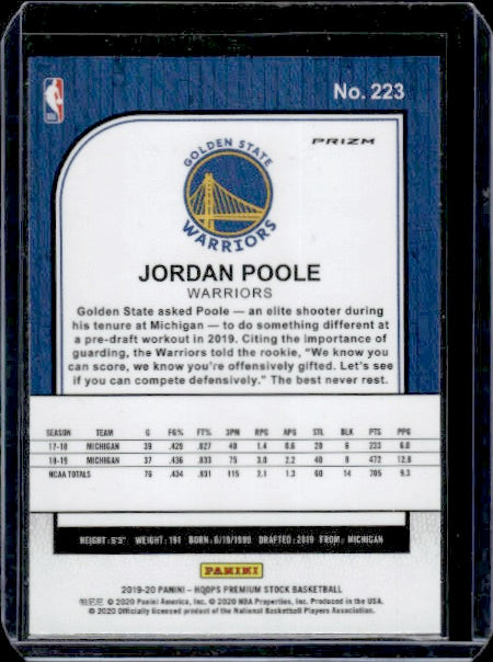2019-20 Hoops Premium Stock #223 Jordan Poole Prizms Pulsar