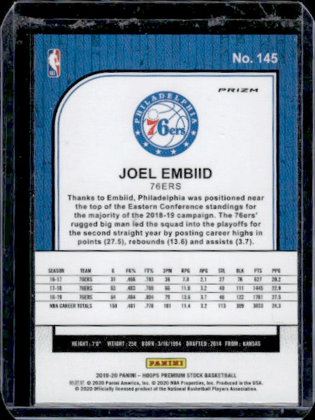 2019-20 Hoops Premium Stock #145 Joel Embiid Prizms Pulsar