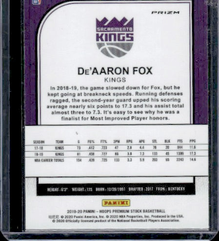 2019-20 Hoops Premium Stock #165 De'Aaron Fox Prizms Pulsar
