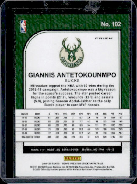 2019-20 Hoops Premium Stock #102 Giannis Antetokounmpo Prizms Pulsar