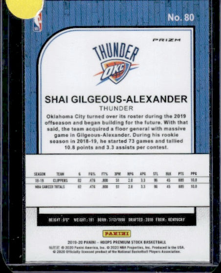 2019-20 Hoops Premium Stock #80 Shai Gilgeous-Alexander Prizms Pulsar