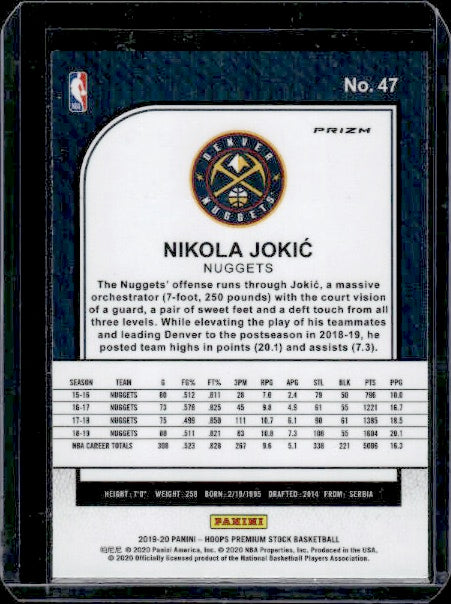 2019-20 Hoops Premium Stock #47 Nikola Jokic Prizms Pulsar