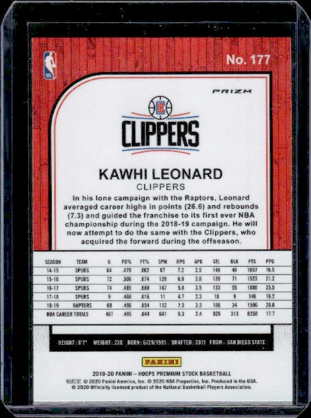 2019-20 Hoops Premium Stock #177 Kawhi Leonard Prizms Pulsar
