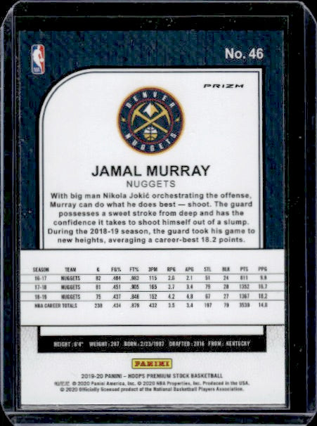 2019-20 Hoops Premium Stock #46 Jamal Murray Prizms Pulsar