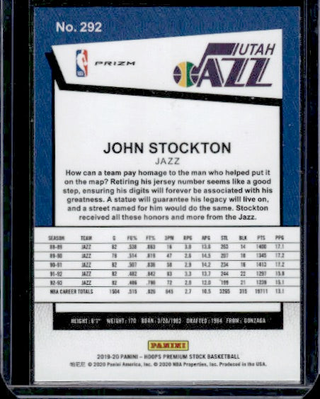 2019-20 Hoops Premium Stock #292 John Stockton Prizms Pulsar