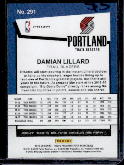 2019-20 Hoops Premium Stock #291 Damian Lillard Prizms Pulsar