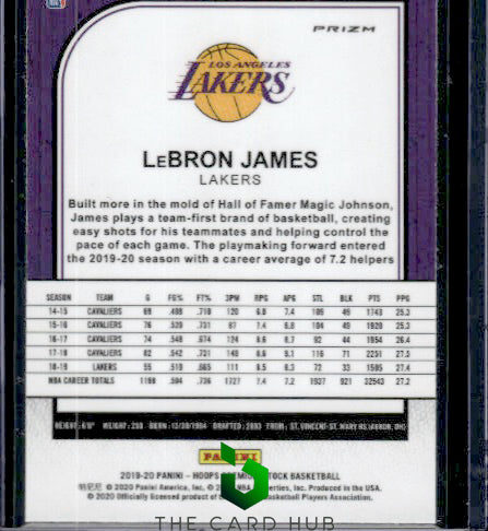 2019-20 Hoops Premium Stock #87 LeBron James Prizms Silver