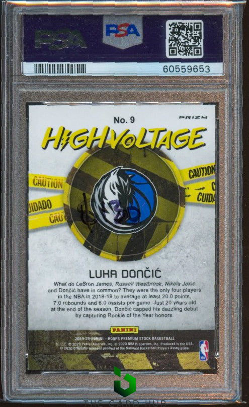 2019-20 Hoops Premium Stock #9 Luka Doncic High Voltage Flash PSA 10
