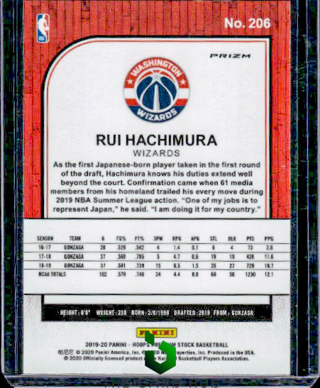 2019-20 Hoops Premium Stock #206 Rui Hachimura Prizms Silver RC