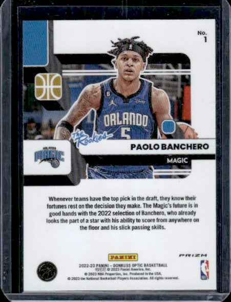 2022-23 Donruss Optic #1 Paolo Banchero The Rookies RC