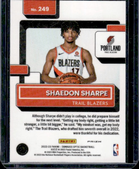 2022-23 Donruss Optic #249 Shaedon Sharpe Choice RC