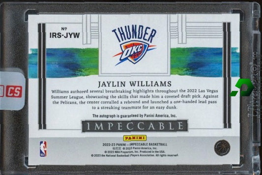 2022-23 Panini Impeccable #IRS-JYW Jaylin Williams Rookie Sig Silver #/25 RC