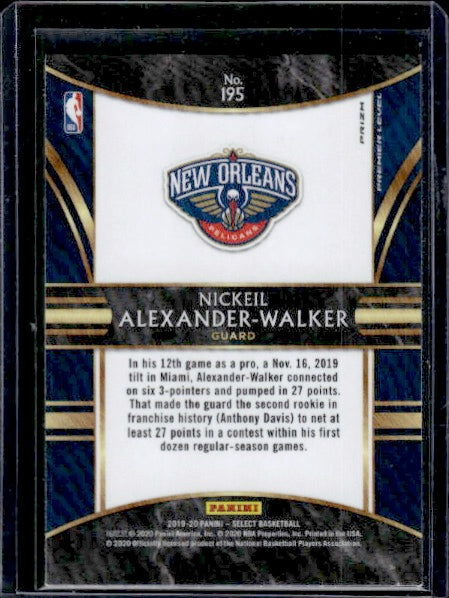 2019-20 Panini Select #195 Nickeil Alexander-Walker Silver Prizms RC