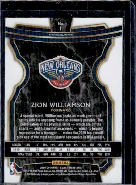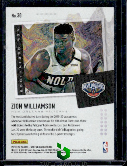 2019-20 Panini Status #30 Zion Williamson New Beginnings Blue RC