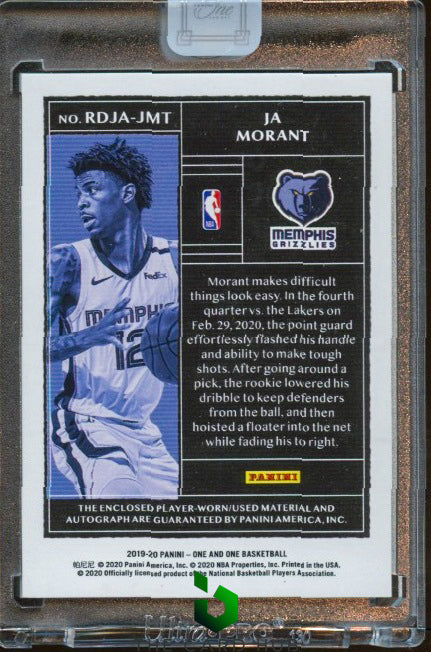 2019-20 Panini One and One #RDJA-JMT Ja Morant Dual Jersey Auto Blue #/49 RC