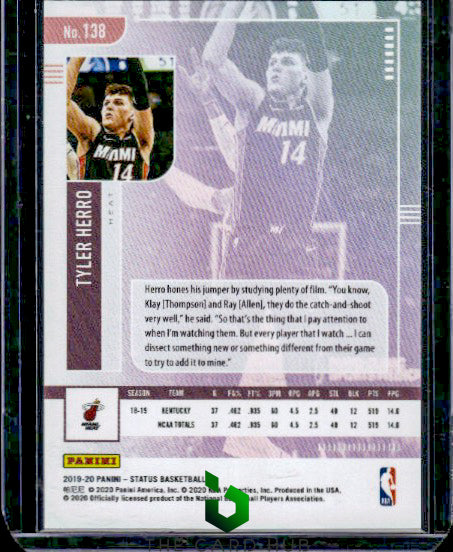 2019-20 Panini Status #138 Tyler Herro White Diamond RC