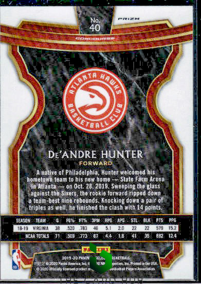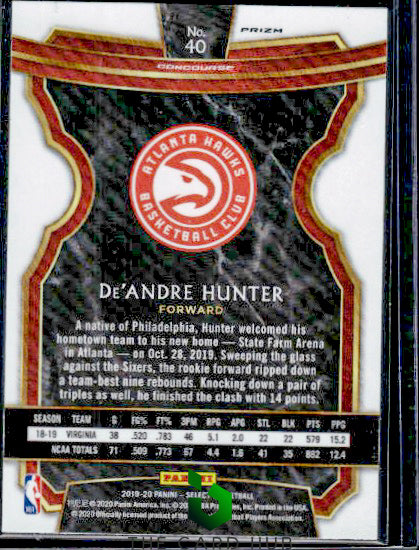 2019-20 Panini Select #40 De'Andre Hunter Silver Prizms RC