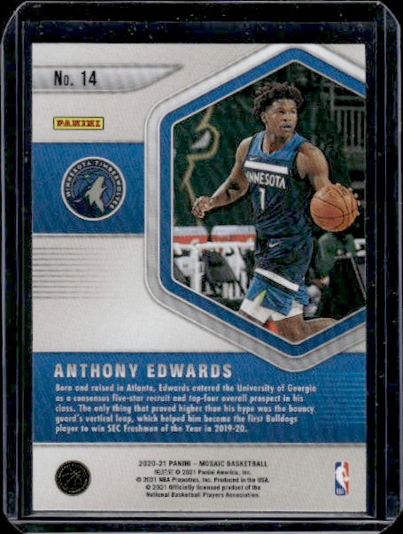 2020-21 Panini Mosaic #14 Anthony Edwards Blue Chips RC