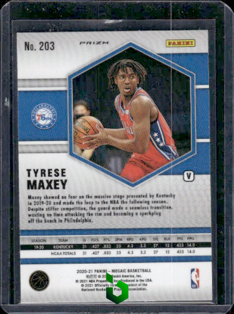 2020-21 Panini Mosaic #203 Tyrese Maxey Mosaic Fast Break Silver Variation
