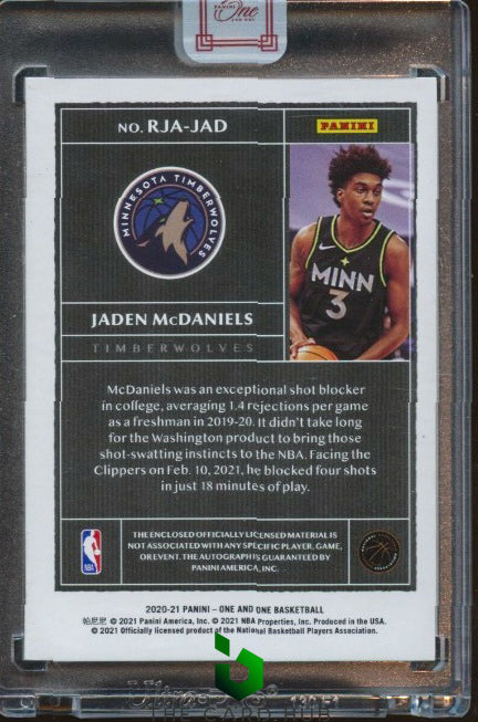2020-21 Panini One and One #RJA-JAD Jaden McDaniels Rookie Jersey Auto Blue #/49