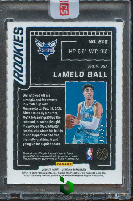 2020-21 Panini Obsidian #210 LaMelo Ball Electric Etch Green RC