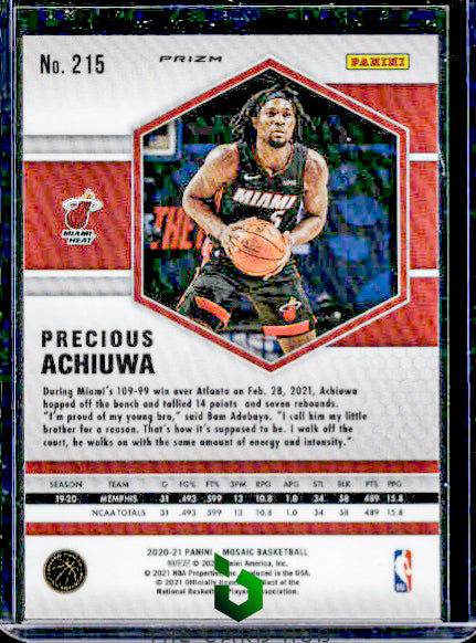2020-21 Panini Mosaic #215 Precious Achiuwa Mosaic Choice Red and Green RC