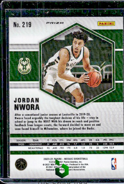 2020-21 Panini Mosaic #219 Jordan Nwora Mosaic Choice Red and Green RC