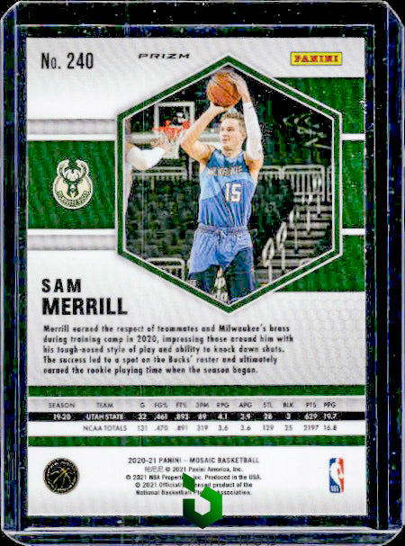 2020-21 Panini Mosaic #240 Sam Merrill Mosaic Choice Red and Green RC