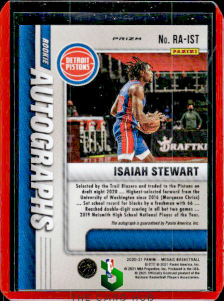 2020-21 Panini Mosaic #RA-IST Isaiah Stewart Rookie Autographs Choice RC